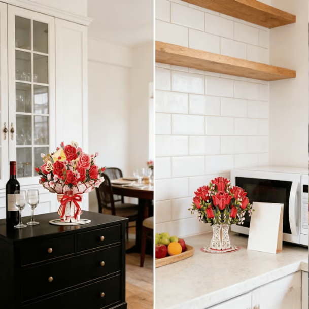 2-in-1 design:ย card + home dรฉcorโevery unfold is a surprise. Sending it not only touches their heart but also adds warmth and romance to your home.